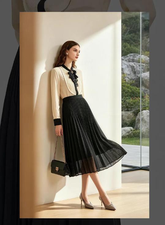 两种密度褶皱渐变,裙摆摇曳灵动有序